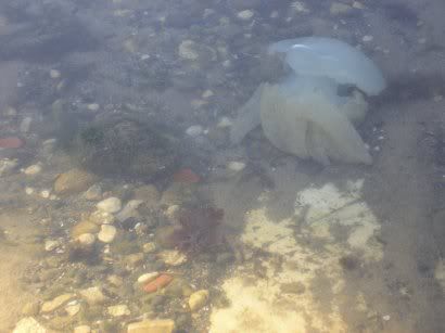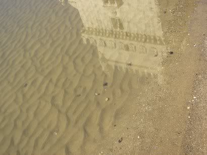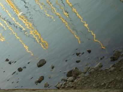 cinzento com lagoas luminosas, mais além.